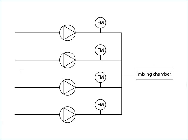 | 沖擊式射流混合過程中使用的化合物一直是液體,例如有機(jī)溶劑中的脂質(zhì)、水中的API以及阻止mRNA周圍形成表面的終止劑。由于過程中成分不同,需要不受流體物性影響的液體流量計,因此使用了科里奧利流量計。