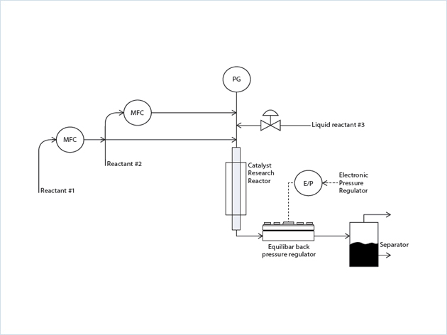 催化劑研發(fā)時,需要高溫高壓來防止化合物的冷凝,以分析來自反應堆廢氣的化學成分。為找出催化劑在哪些工況下對特定的化學反應具有優(yōu)化性能,必須涉及高壓范圍。為此,采用Bronkhorst壓力控制器對Equilibar穹頂加載式背壓調節(jié)器加壓。 |